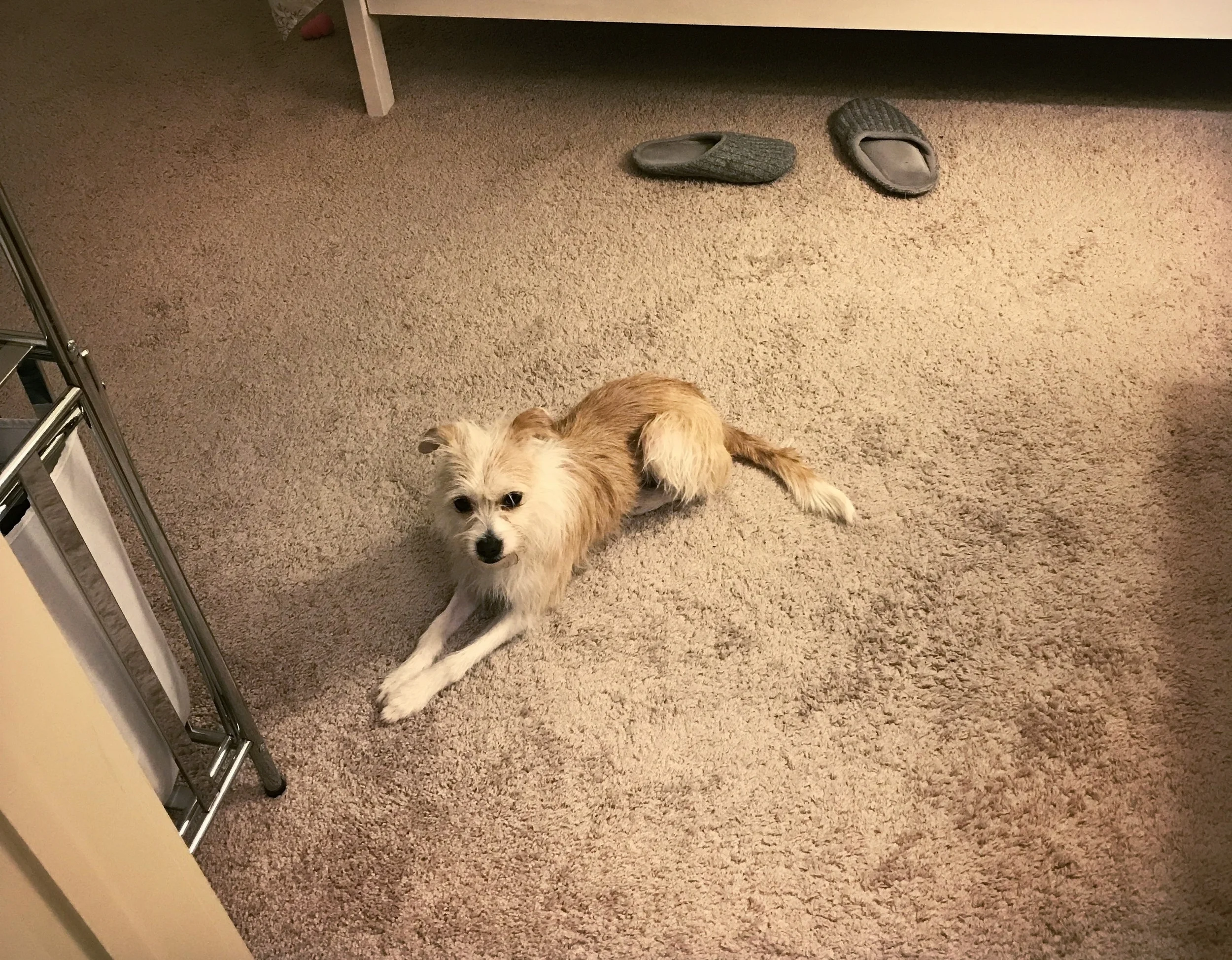 "Sally is snuggly, scruffy, and so, so, so sweet. ALSO, somehow the most likely to be covered in dirt at any time."